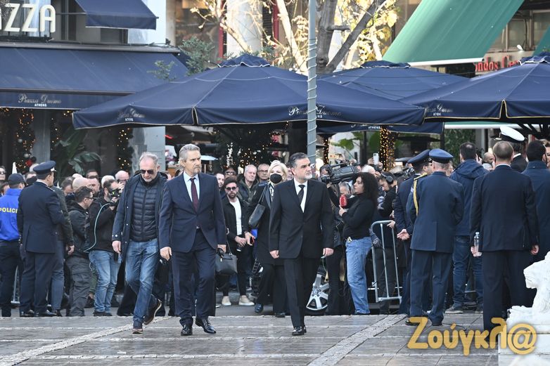 13.40 Η πομπή ξεκινά πεζή την πορεία της στην Μητροπόλεως κατευθυνόμενη προς το Α’ Νεκροταφείο Αθηνών.
