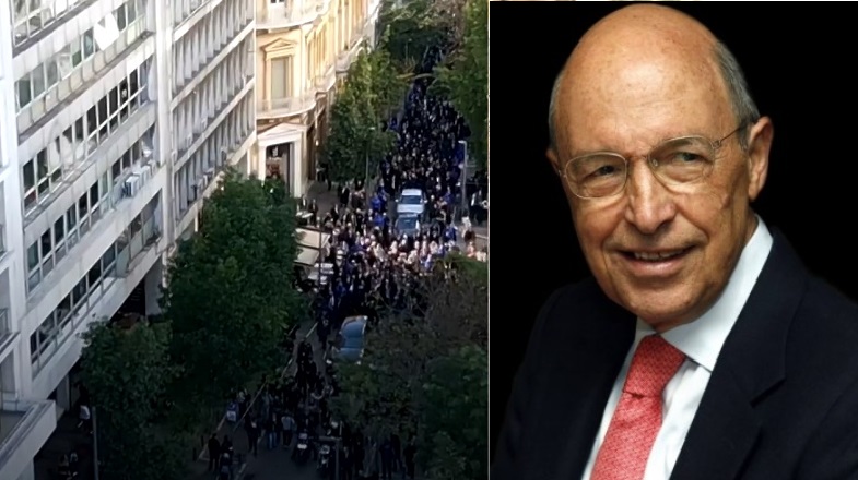 Στην πορεία έγινε σύντομη στάση στο δεύτερο σπίτι του Κώστα Σημίτη στο κέντρο της Αθήνας.