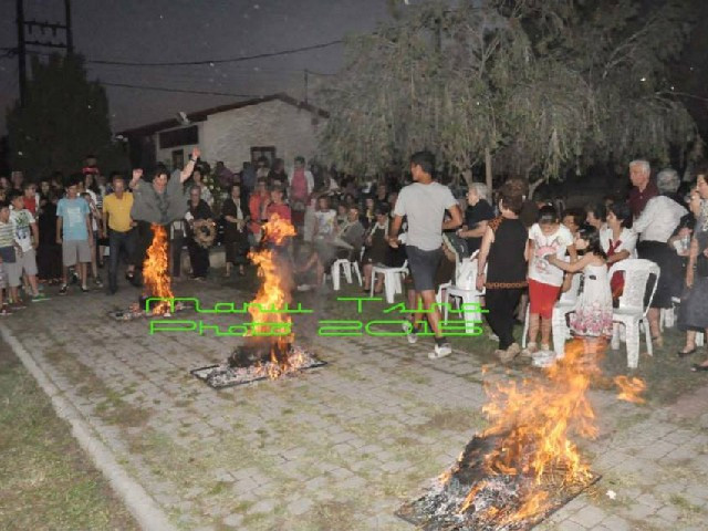 Στις πλατείες των χωριών στήνεται μια μεγάλη πυρκαγιά, πάνω από την οποία πηδάνε όλοι οι κάτοικοι. Σύμφωνα με την παράδοση, η φωτιά επιφέρει την κάθαρση και όσοι περνούν από πάνω της απαλλάσσονται από το κακό. Έτσι λοιπόν οι πλατείες του νομού φωτίστηκαν από τις φλόγες του εθίμου και μικροί και μεγάλοι έκαναν ένα μικρό «πέρασμα» από πάνω τους.