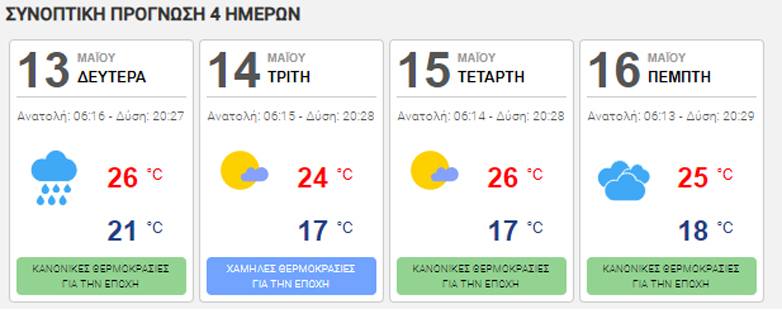 ΠΡΟΓΝΩΣΗ ΓΙΑ ΤΗΝ ΠΕΜΠΤΗ 16-05-2024