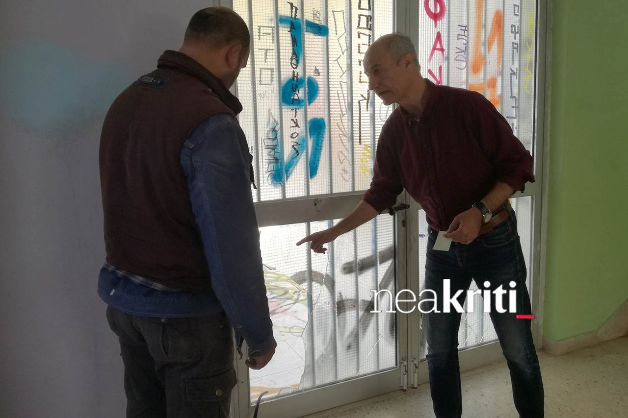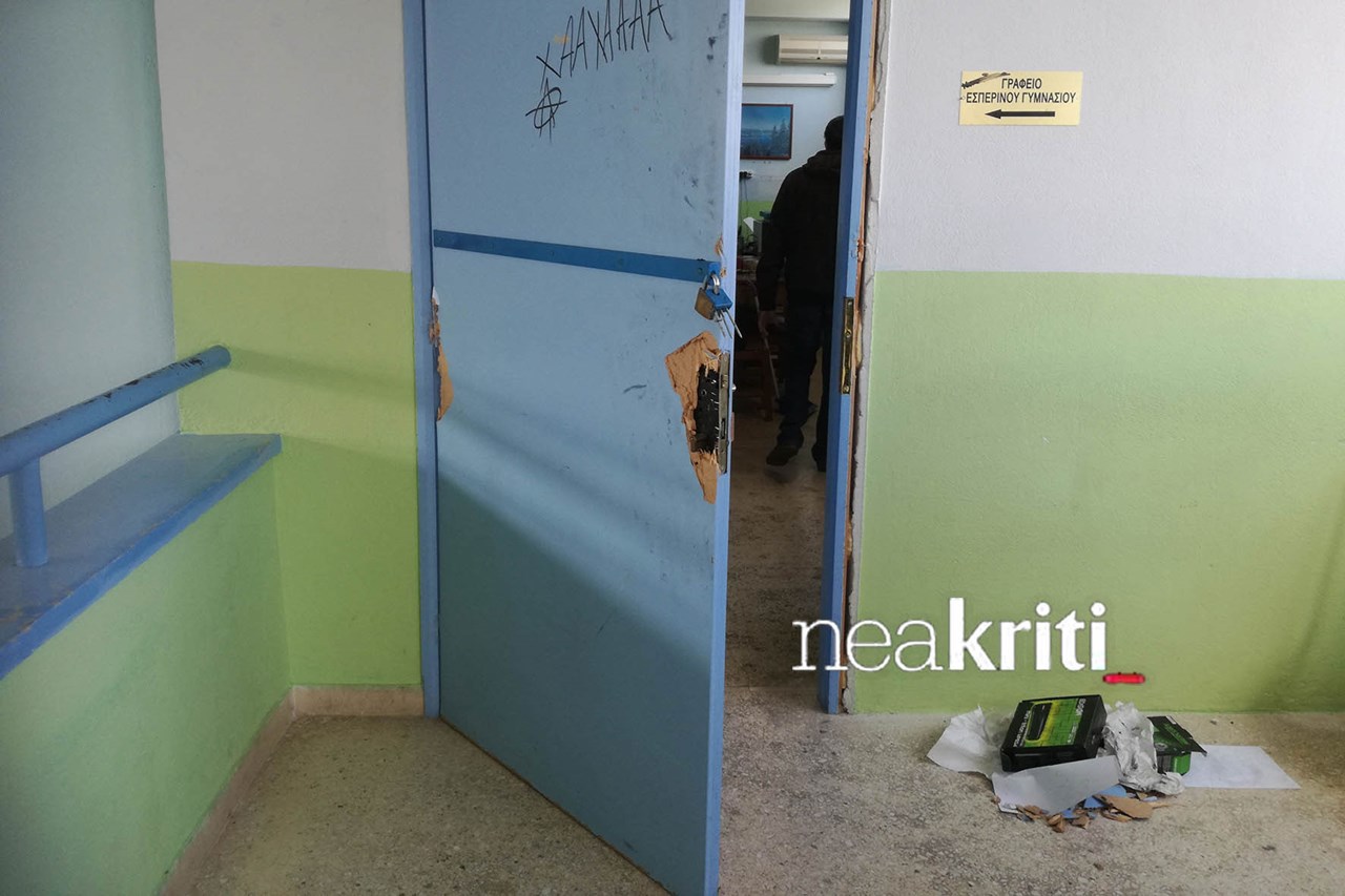 «Οι δράστες μπήκαν από την αυλή του Λυκείου και σπάζοντας τη τζαμαρία εισέβαλαν στο χώρο και κατευθύνθηκαν στο γραφείο του διευθυντή του Εσπερινού Γυμνασίου. Άνοιξαν με λοστό την πόρτα και ξέσπασαν με μένος σε έπιπλα, βιβλία και ηλεκτρονικές συσκευές» αναφέρει ο Αντώνης Θωμαδάκης, Διευθυντής του Εσπερινού Γυμνασίου Χανίων.