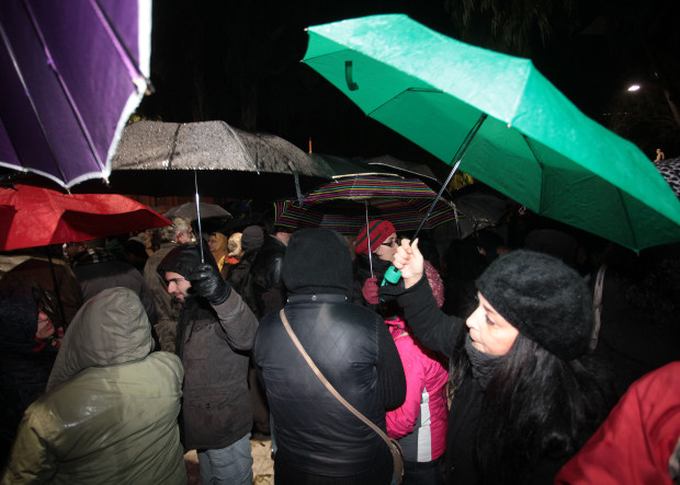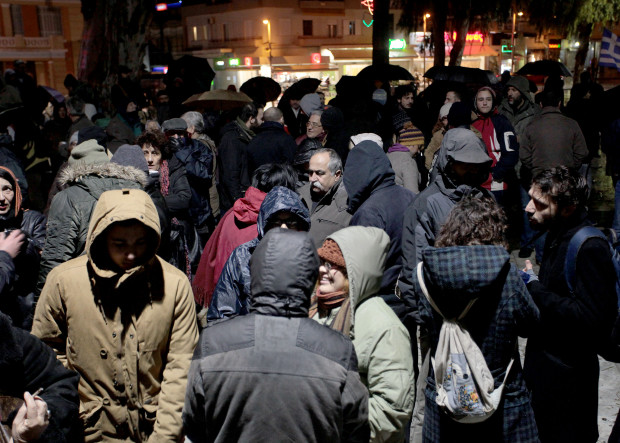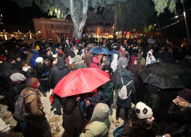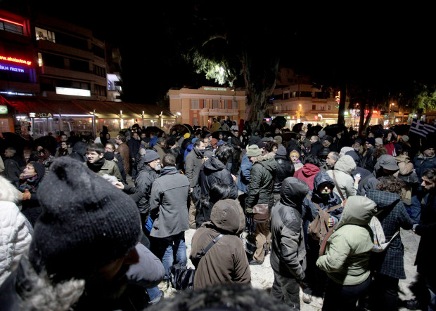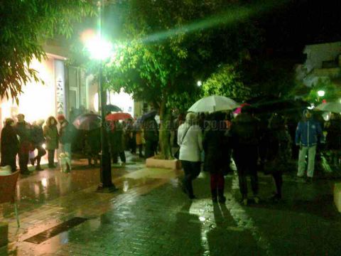 Παρά το τσουχτερό κρύο και το χιονόνερο, εκατοντάδες Ηρακλειώτες συγκεντρώθηκαν στην πλατεία Ελευθερίας.