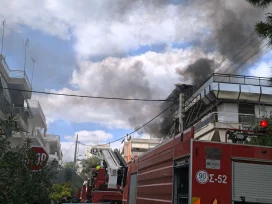 Δύο άτομα βρίσκονταν στο οίκημα που έχει πάρει φωτιά, τα οποία κατέφυγαν στην ταράτσα της τριώροφης οικοδομής.