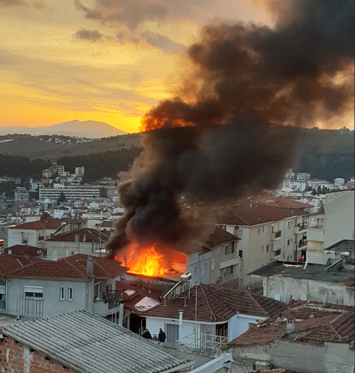Η εστία της φωτιάς ήταν σε μια κεραμοσκεπή κατοικίας στην Κοζάνη, σε πυκνοκατοικημένο σημείο της πόλης, με συνέπεια να υπάρξει φόβος και αγωνία μήπως επεκταθεί και στις διπλανές κατοικίες.