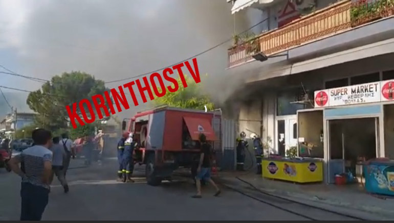 Μεγάλη φωτιά σε σούπερ μάρκετ στο Χιλιομόδι Κορίνθου