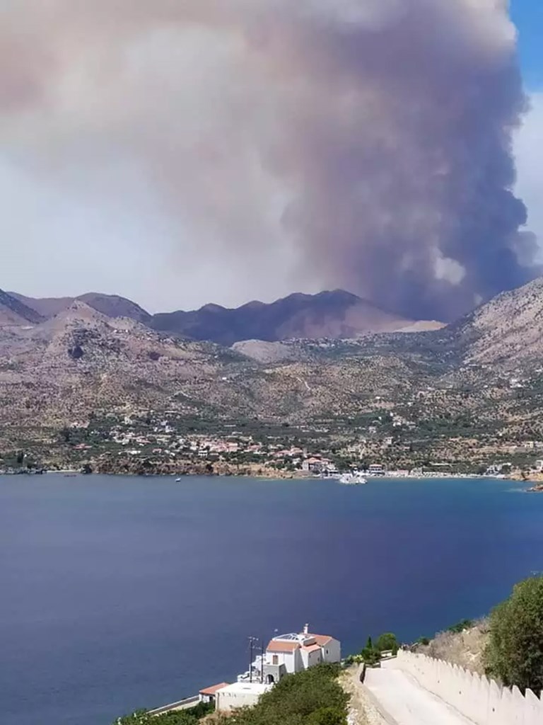 Η φωτιά, σύμφωνα με την πυροσβεστική, έχει μεγάλη περίμετρο, ωστόσο οι καιρικές συνθήκες έχουν βελτιωθεί.