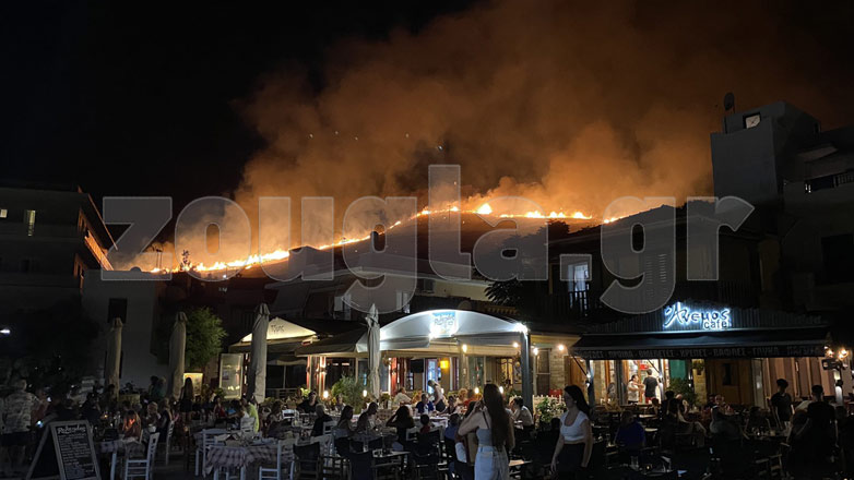 Οι εικόνες ήταν ορατές από το λιμάνι στο απέναντι ύψωμα, με τους παραθεριστές να παρακολουθούν με αγωνία, ενώ οι καπνοί άρχιζαν και καλύπτουν την περιοχή.
