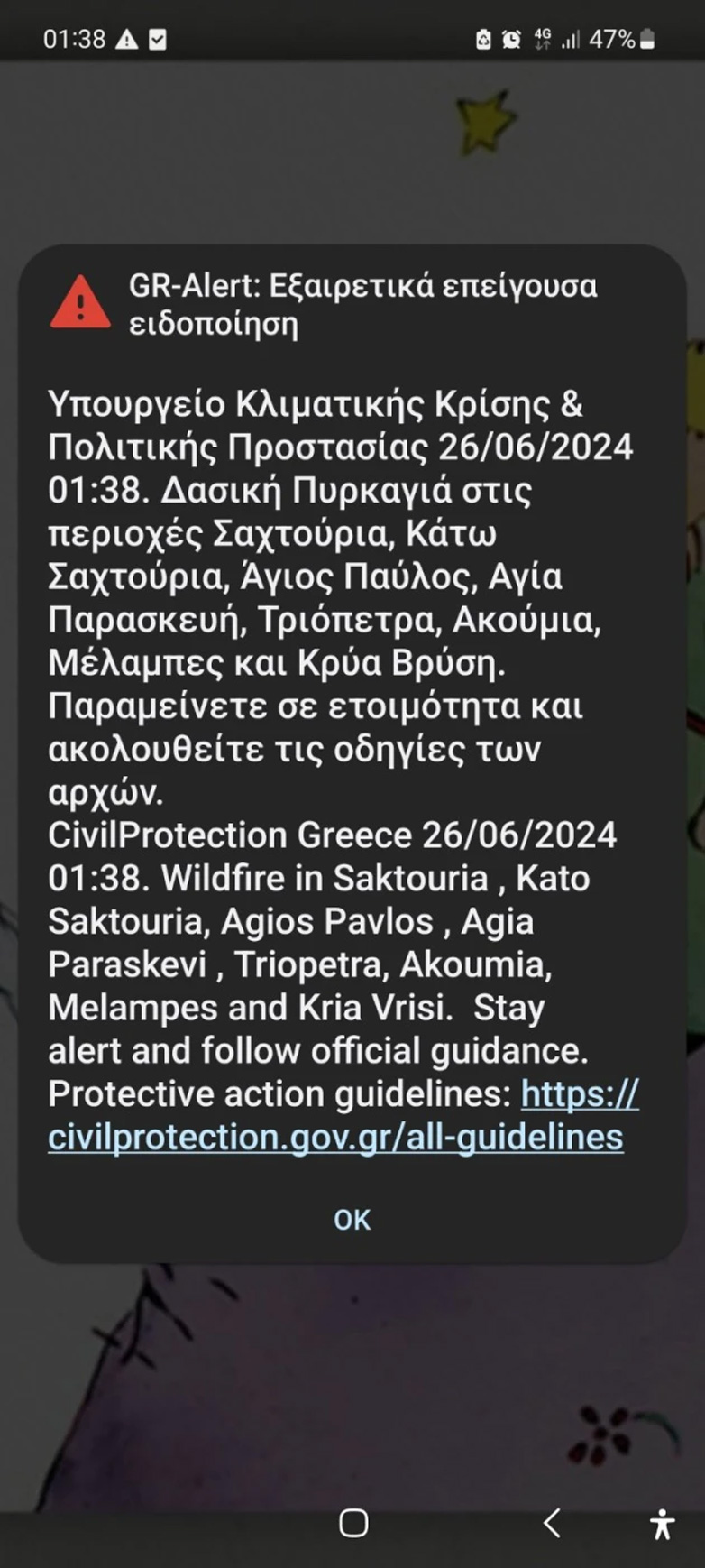 Σύμφωνα με πληροφορίες του neakriti, πριν τις 2 το πρωί εστάλη μήνυμα από το «112» στους κατοίκους των περιοχών Σαχτούρια, Κάτω Σαχτούρια, Άγιος Πεύλος, Αγία Παρασκευή, Τριόπετρα, Ακούμια, Μέλαμπες και Κρύα Βρύση να παραμείνουν σε ετοιμότητα και να ακολουθήσουν τις οδηγίες των Αρχών.