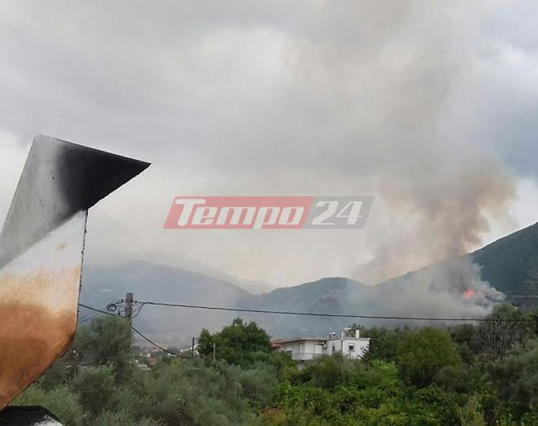 Οι καπνοί είναι ορατοί απο την Πάτρα. Στο σημείο σπεύδουν οχήματα της πυροσβεστικής.