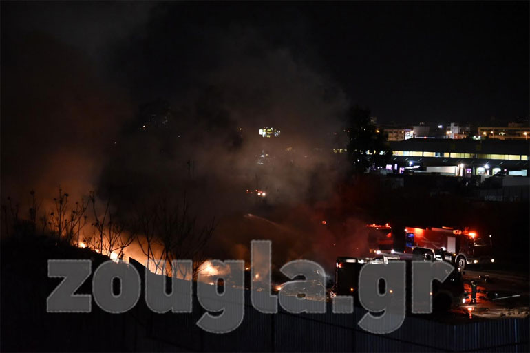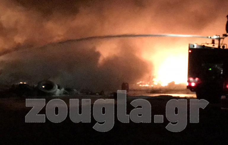 Περίπου 51 πυροσβέστες με 17 οχήματα επιχειρούν στο σημείο. Λόγω της εύφλεκτης ύλης των ελαστικών και των υπόλοιπων αποθηκευμένων υλικών, η ατμόσφαιρα ήταν αποπνικτική και πολύ γρήγορα οι καπνοί γέμισαν τον ουρανό και έγιναν ορατοί από το κέντρο έως τα δυτικά Προάστια.