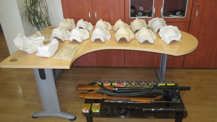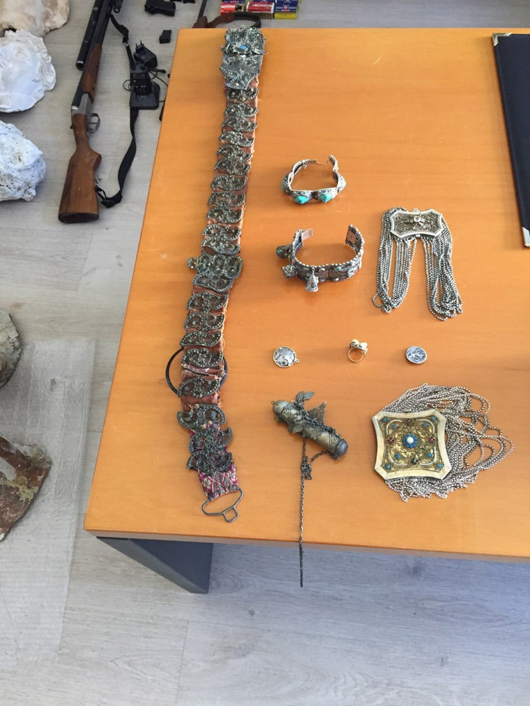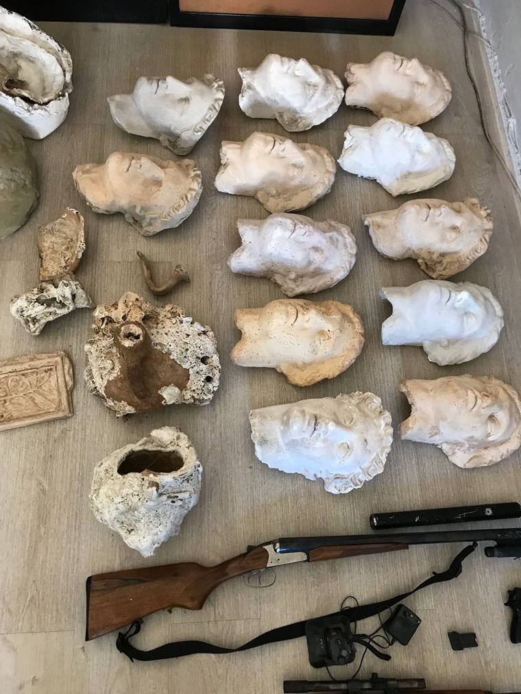 Στην κατοχή τους επίσης βρέθηκαν ένα δίκανο, ένα τυφέκιο, ένα πιστόλι εκατοντάδες γεμιστήρες και φυσίγγια, ένας ασύρματος και άλλα παράνομα αντικείμενα. Παράλληλα ανακαλύφτηκε και παράνομο εργαστήριο κατασκευής εκμαγείων αρχαίων αντικειμένων.