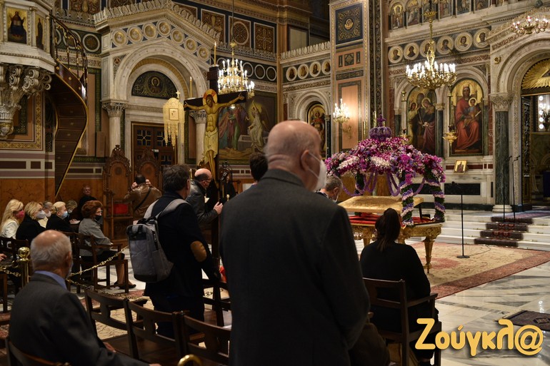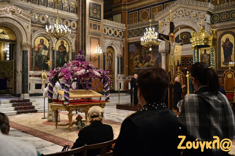 Στη συνέχεια, γίνεται η Αποκαθήλωση του Εσταυρωμένου. Ακριβώς μετά, μέσα στο Ιερό Κουβούκλιο τοποθετείται ένα ύφασμα, πάνω στο οποίο έχει κεντηθεί ή ζωγραφιστεί ο Κύριος, νεκρός. Το ύφασμα αυτό λέγεται Επιτάφιος.