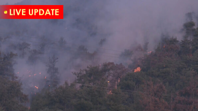 Η κατάσταση παραμένει δύσκολη στη βόρεια μεριά του νησιού. Εδώ και λίγη ώρα ξεκίνησαν οι ρίψεις νερού από τα εναέρια μέσα. Συνολικά συνδράμουν  1 ελικόπτερο και 3 αεροσκάφη.