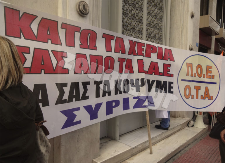 Περίπου 30 μέλη της ΠΟΕ-ΟΤΑ εισέβαλαν στον χώρο, εκφράζοντας τη διαμαρτυρία τους για την πρόθεση της κυβέρνησης να αφαιρέσει από τον κατάλογο με τα βαρέα και ανθυγιεινά τα ένσημα των εργαζομένων στην Καθαριότητα. Αντιπροσωπεία της ΠΟΕ-ΟΤΑ ανέβηκε στο γραφείο του αναπληρωτή υπουργού Οικονομικών Γιώργου Χουλιαράκη, προχωρώντας σε συμβολική κατάληψη.