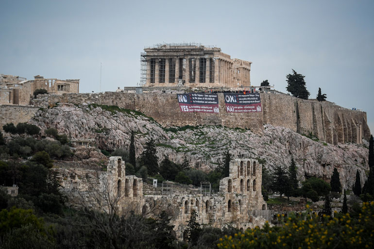 Πανό του ΚΚΕ στην Ακρόπολη κατά της Συμφωνίας των Πρεσπών