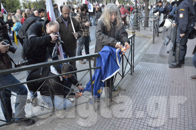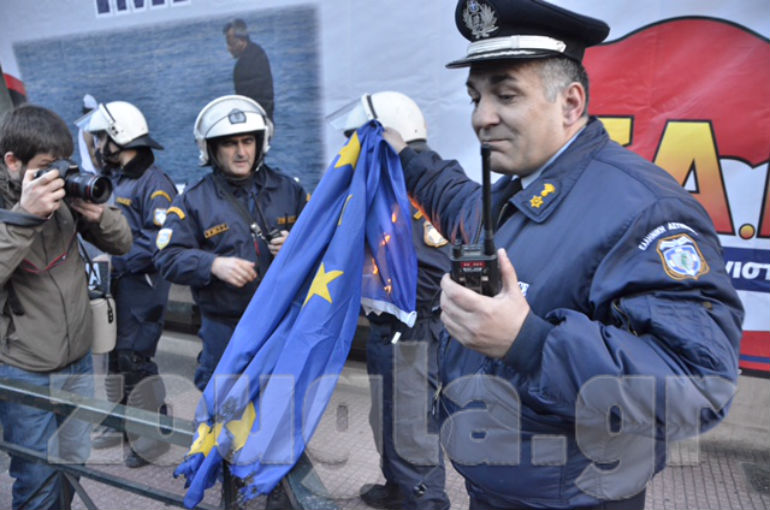 Στην πλατεία Κλαυθμώνος συγκεντρώθηκαν το απόγευμα της Πέμπτης μέλη του ΠΑΜΕ, τα οποία εν συνεχεία πραγματοποίησαν συλλαλητήριο προς τα γραφεία της Ευρωπαϊκής Ένωσης,