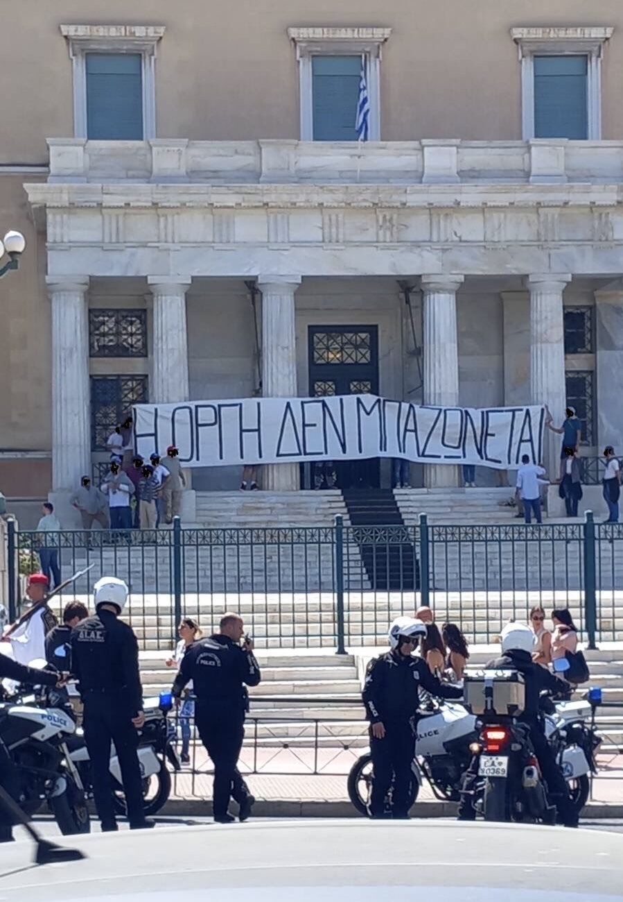 Μέλη του Ρουβίκωνα μπήκαν μέσα στην Βουλή και άνοιξαν πανό για τα Τέμπη που γράφει Η ΟΡΓΗ ΔΕΝ ΜΠΑΖΩΝΕΤΑΙ pic.twitter.com/xM6uZJmhPa