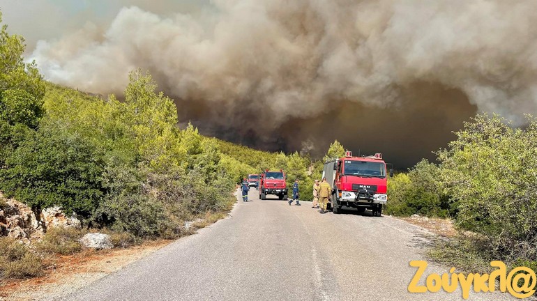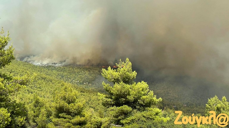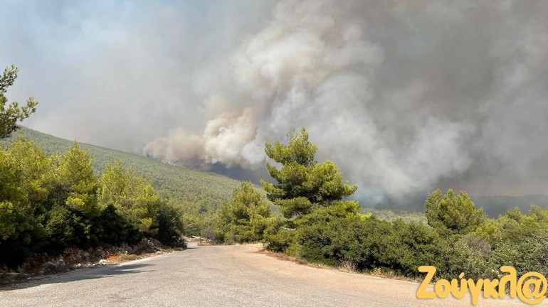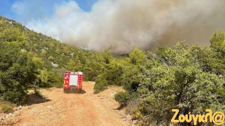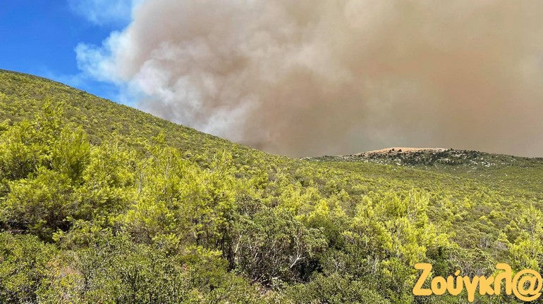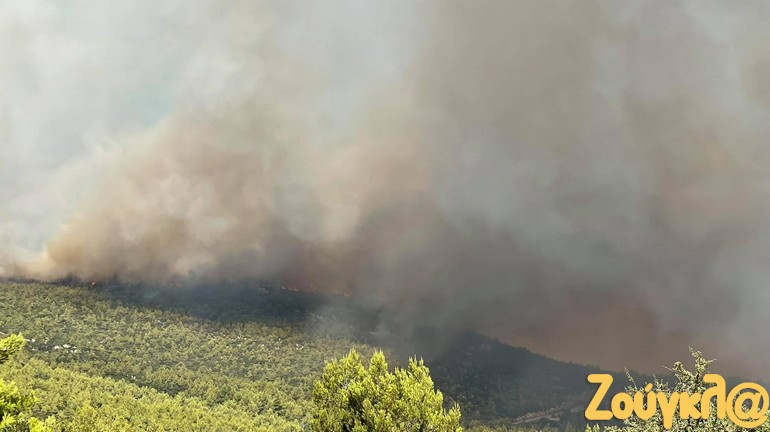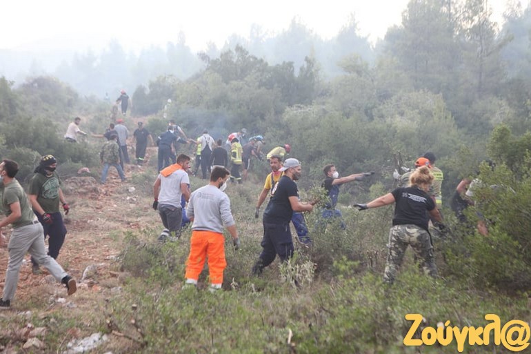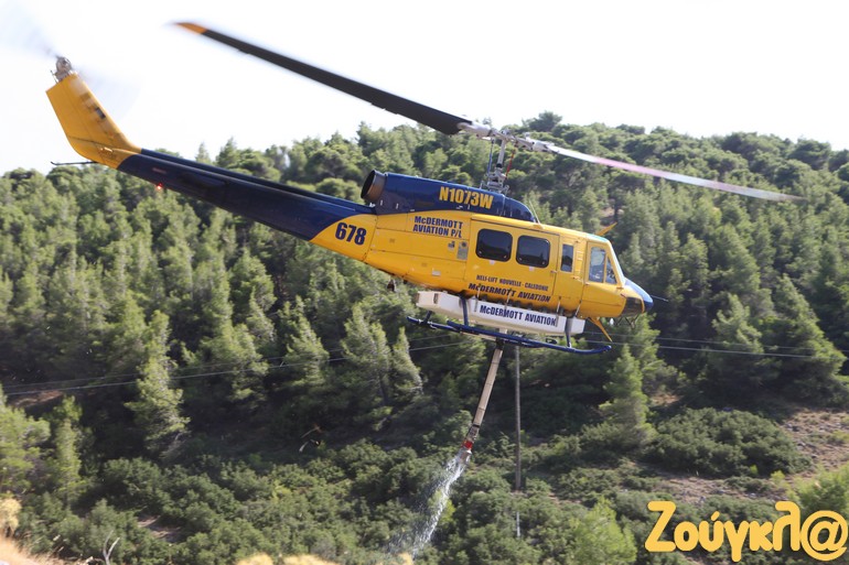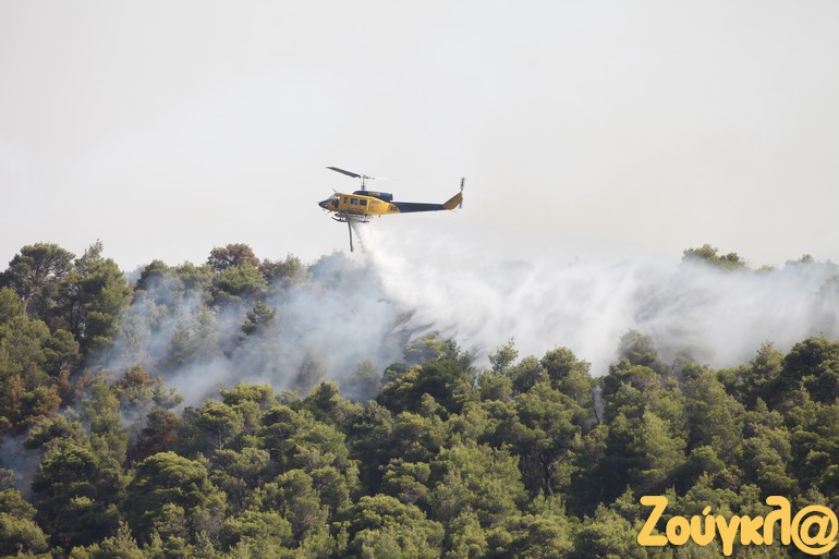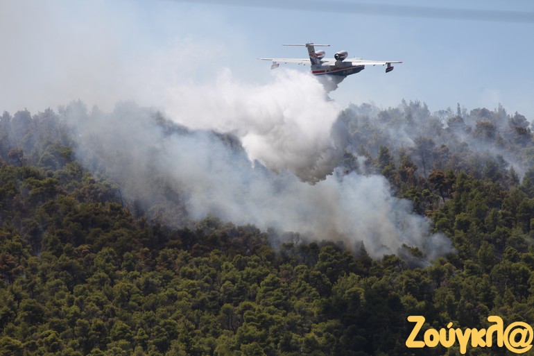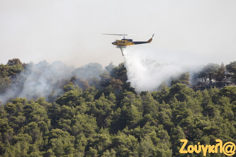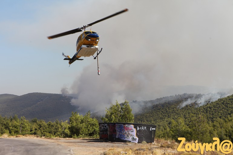 Το θετικό είναι ότι καθ’ όλη τη διάρκεια της ημέρας δεν φύσηξαν ισχυροί άνεμοι και έτσι τα εναέρια μέσα κατάφερναν να ανακόπτουν την επέκταση των εστιών που ξεπηδούν συνεχώς στην δασική έκταση.
