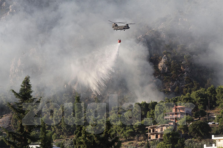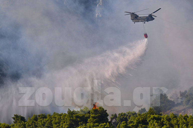 Στην περιοχή επιχειρούν από το πρωί 367 πυροσβέστες με 92 οχήματα, 15 πεζοπόρα τμήματα, εθελοντές πυροσβέστες και υδροφόρες ΟΤΑ, ενώ από αέρος συντρέχουν 4 αεροσκάφη και 6 ελικόπτερα. Οι προσπάθειες των πυροσβεστικών δυνάμεων επικεντρώνονται αυτή την ώρα κυρίως στις περιοχές Γαλατάκι και Ντράσα.