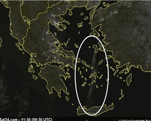 Δορυφορική φωτογραφία που τραβήχτηκε το απόγευμα του Σαββάτου δείχνει ότι οι καπνοί φτάνουν μέχρι την… Κρήτη: