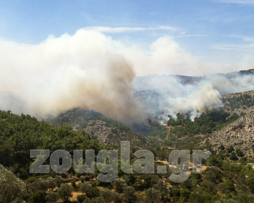Ειδικότερα, σε Ελάτα, Άγιο Γιώργη Συκούση και Αρμόλια-Κοντυλόπο εστιάζονταν οι προσπάθειες των επίγειων μέσων, που ενισχύθηκαν, εκτός από εναέρια μέσα, με άλλα 13 οχήματα, 62 πυροσβέστες και 116 μέλη πεζοπόρου τμήματος, που έφτασαν λίγο μετά τις 11.00 το πρωί με το αρματαγωγό «Σάμος» στο λιμάνι των Μεστών.