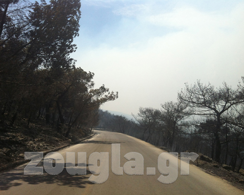 (Το μέτωπο της φωτιάς κατά τις βραδινές ώρες του Σαββάτου)