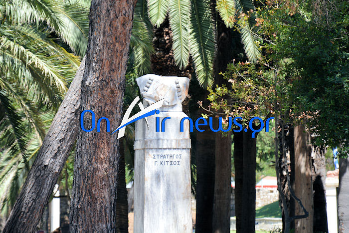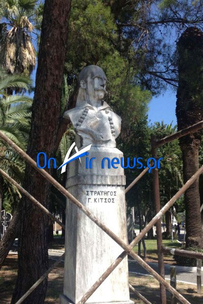 Επιχείρηση συγκόλλησης της προτομής του Στρατηγού Κίτσου βρίσκεται σε εξέλιξη από σήμερα το πρωί στον Κήπο των Ηρώων.