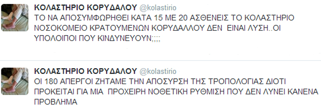 180 ΑΠΕΡΓΟΙ ΣΤΟ ΚΟΛΑΣΤΗΡΙΟ ΝΟΣΟΚΟΜΕΙΟ ΚΡΑΤΟΥΜΕΝΩΝ ΚΟΡΥΔΑΛΛΟΥ ΕΧΟΥΜΕ ΣΧΟΛΕΙΟ ΔΙΠΛΑ ΜΑΣ---ΒΟΗΘΗΣΤΕ