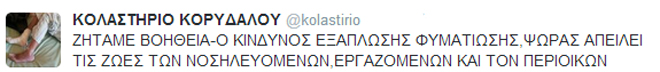 ΔΙΑΔΩΣΤΕ ΤΟ ΠΑΝΤΟΥ ΚΙΝΔΥΝΟΣ ΕΞΑΠΛΩΣΗΣ ΦΥΜΑΤΙΩΣΗΣ ΨΩΡΑΣ ΣΤΟ ΚΟΛΑΣΤΗΡΙΟ ΝΟΣΟΚΟΜΕΙΟ ΚΡΑΤΟΥΜΕΝΩΝ ΚΟΡΥΔΑΛΛΟΥ