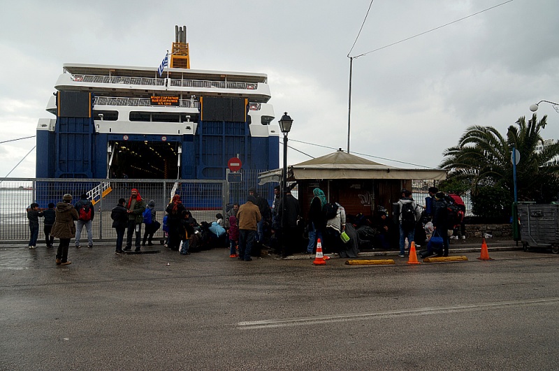 Οι ελληνικές αρχές επιβιβάζουν τους πρόσφυγες σε πλοία με προορισμό τον Σκαραμαγκά, τον Βόλο και την Καβάλα, απ’ όπου θα τους παραλαμβάνουν λεωφορεία και θα τους μεταφέρουν σε νέες δομές φιλοξενίας, τις οποίες έχει κατασκευάσει ο στρατός.