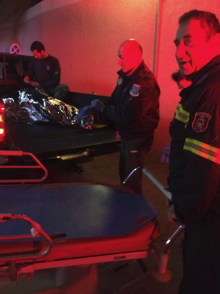 Οι Εθελοντές Διασώστες Έκτακτων Αναγκών Κρήτης ανέλαβαν το έργο παροχής πρώτων βοηθειών, και στη συνέχεια μαζί με άνδρες του πυροσβεστικού κλιμακίου Σητείας, τη μεταφορά του στο νοσοκομείο πάνω σε… καρότσα αγροτικού αυτοκινήτου.