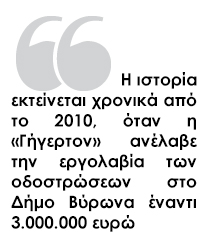 Η ιστορία εκτείνεται χρονικά από το 2010, όταν η «Γήγερτον» ανέλαβε την εργολαβία των οδοστρώσεων στο Δήμο Βύρωνα έναντι 3.000.000 ευρώ.