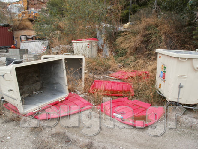 Σύμφωνα μάλιστα με καταγγελίες μελών της Επιτροπής για την Προστασία του Υμηττού, τα καπάκια των κάδων που πετάχτηκαν στην έκταση είναι από κάδους που αγοράστηκαν το 2010 και κόστισαν στον δήμο 300.000 ευρώ!