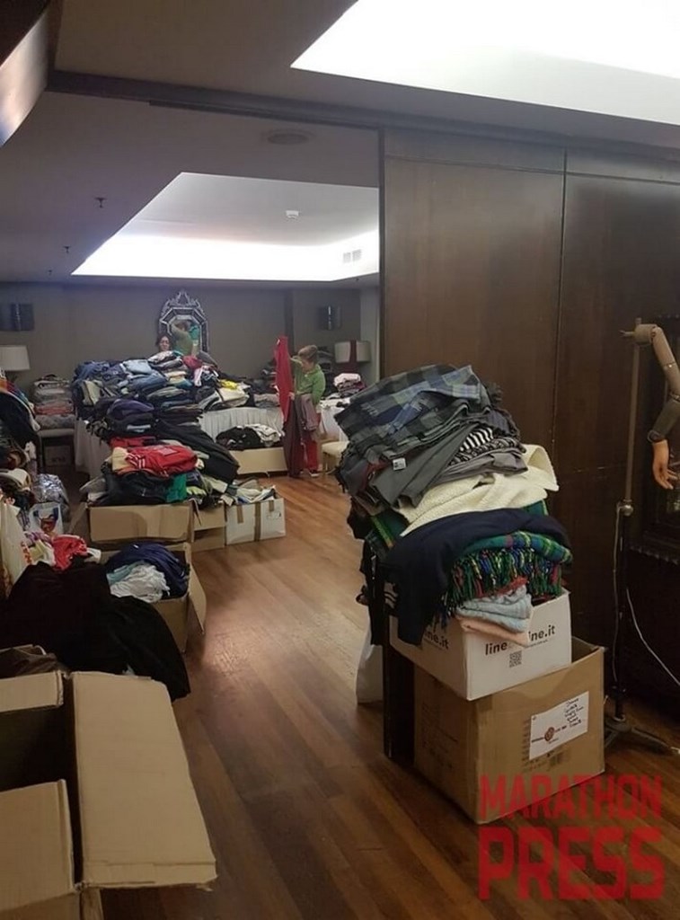 «Υπήρχε δυνατότητα να έρθω και νωρίτερα, άλλωστε είχαμε υλικό συγκεντρωμένο στην Τεργέστη όταν εγώ ακόμη ήμουν εδώ στο πρώτο μου ταξίδι. Στόχος όμως δεν ήταν να έρθω με τόσα ρούχα όσα θα αρκούσαν για να πάρει μια οικογένεια, δυο-τρεις μπλούζες κι άλλα τόσα παντελόνια. Ήθελα ο κόσμος που χρειάζεται βοήθεια να μπορεί να ξαναγεμίσει την ντουλάπα του», τόνισε ο Λορέντζο.