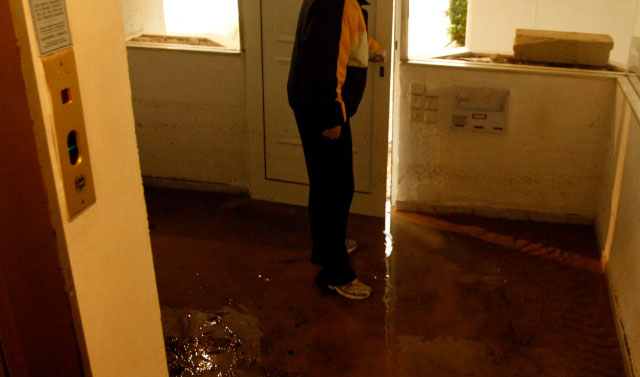(Πλημμυρισμένη είσοδος πολυκατοικίας)