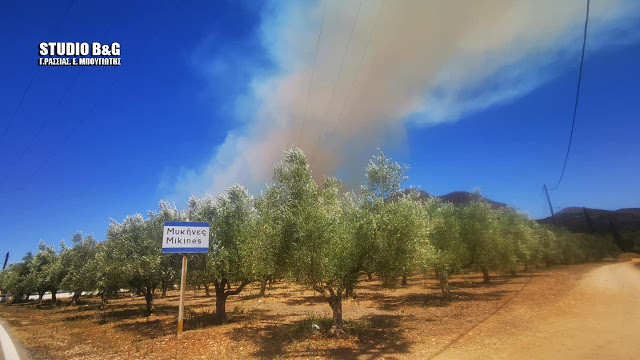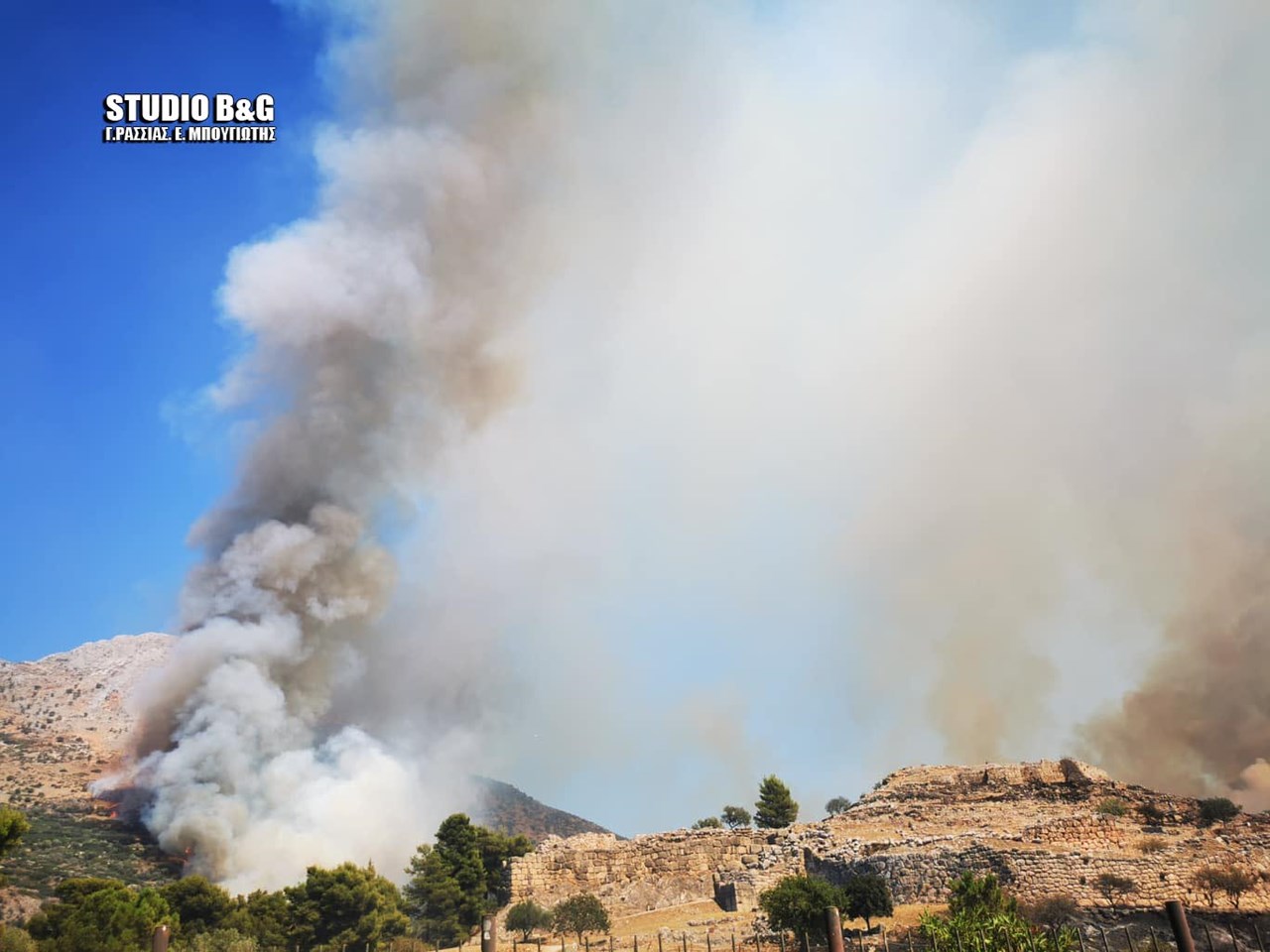 Συναγερμός σήμανε το μεσημέρι της Κυριακής στην Πυροσβεστική λόγω πυρκαγιάς η οποία ξέσπασε στην Αργολίδα και συγκεκριμένα δίπλα στον αρχαιολογικό χώρο στις Μυκήνες. Στο σημείο έσπευσαν από την πρώτη στιγμή ισχυρές πυροσβεστικές δυνάμεις, ενώ οι Αρχές προχώρησαν σε προληπτική εκκένωση του αρχαιολογικού χώρου. Λίγο πριν τις 21.00, η φωτιά τέθηκε υπό μερικό έλεγχο.