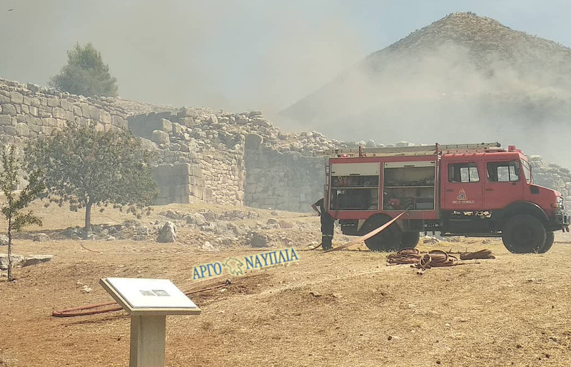 Ο αρχαιολογικός χώρος και το μουσείο Μυκηνών θα φυλάσσονται με μέριμνα της Εφορείας Αρχαιοτήτων Αργολίδας και με τη σύμφωνη γνώμη της Πυροσβεστικής Υπηρεσίας, προκειμένου να αντιμετωπιστεί περίπτωση αναζωπύρωσης της πυρκαγιάς.