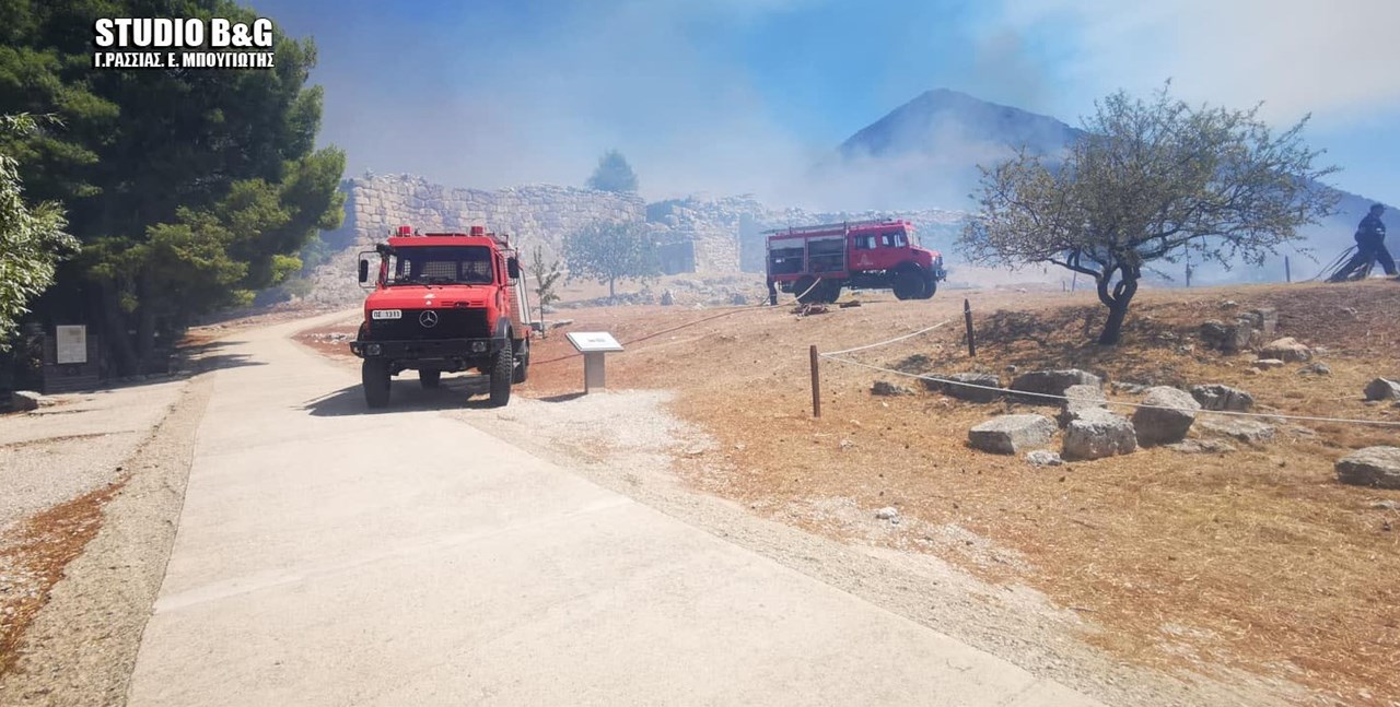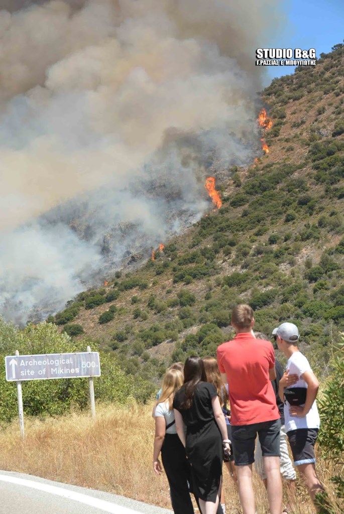 Συναγερμός σήμανε το μεσημέρι της Κυριακής στην Πυροσβεστική λόγω πυρκαγιάς η οποία ξέσπασε στην Αργολίδα και συγκεκριμένα δίπλα στον αρχαιολογικό χώρο στις Μυκήνες. Στο σημείο έσπευσαν από την πρώτη στιγμή ισχυρές πυροσβεστικές δυνάμεις, ενώ οι Αρχές προχώρησαν σε προληπτική εκκένωση του αρχαιολογικού χώρου. Λίγο πριν τις 21.00, η φωτιά τέθηκε υπό μερικό έλεγχο.