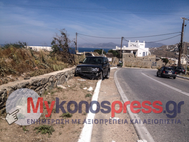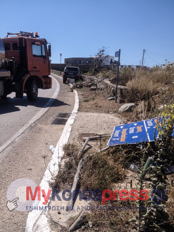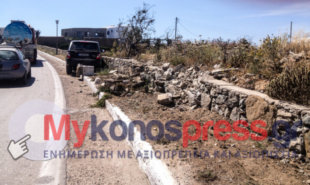 Σύμφωνα με δημοσίευμα του mykonospress.gr, τις πρώτες πρωινές ώρες όχημα μεγάλου κυβισμού εξετράπη της πορείας του, παρέσυρε ταμπέλα και προσέκρουσε με δύναμη σε ξερολιθιά. Επί τόπου έσπευσε περιπολικό της αστυνομίας για να καταγράψει το συμβάν.