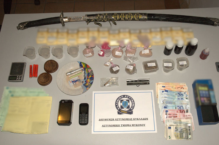 Συνελήφθησαν την Τετάρτη στη Μύκονο δύο άνδρες, 25 και 39 ετών, σε βάρος των οποίων σχηματίστηκαν ξεχωριστές δικογραφίες για τα κατά περίπτωση αδικήματα της κατοχής, διακίνησης, καλλιέργειας ναρκωτικών ουσιών και παράνομης κατοχής όπλων και κροτίδων.