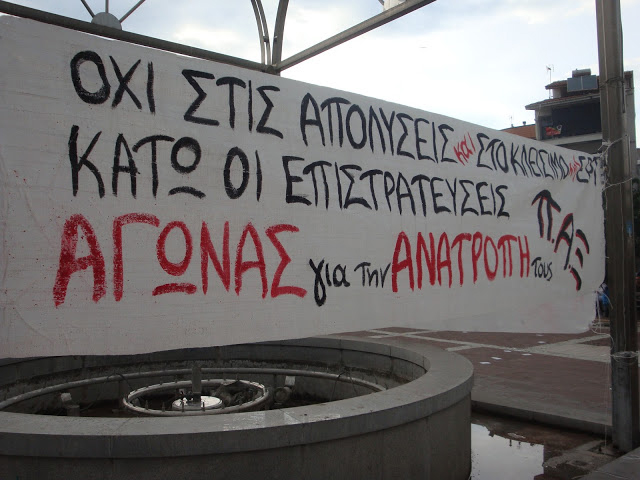 Στο συλλαλητήριο συμμετείχε μια μικρή ομάδα εκπαιδευτικών και μέλη Αριστερών παρατάξεων, με τη νεολαία του ΣΥΡΙΖΑ να αναρτά ένα τεράστιο πανό με συνθήματα συμπαράστασης στους απολυμένους εργαζόμενους της ΕΡΤ. Το συλλαλητήριο ξεκίνησε λίγο μετά τις 19.00 το απόγευμα, ενώ λίγο πριν μια ομάδα αντιεξουσιαστών διένειμε έντυπο υλικό και διάνθισε μουσικά μια αντίστοιχη εκδήλωση μπροστά από το πρώην κτίριο της Τράπεζας της Ελλάδος.