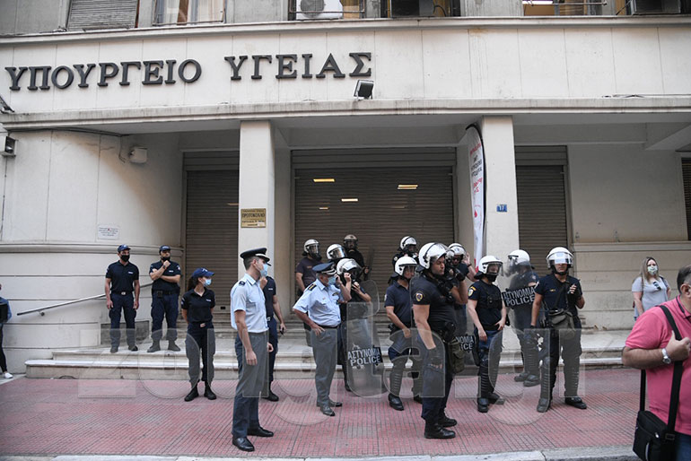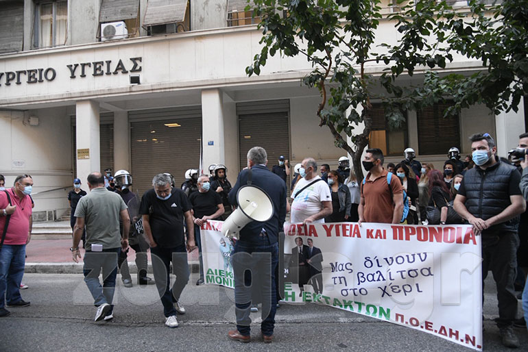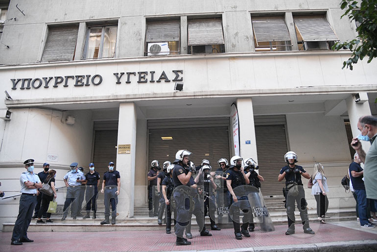 Επεισόδια, χρήση χημικών και ξύλο με κλομπ σημειώθηκαν το πρωί της Τετάρτης στη συγκέντρωση μελών της ΠΟΕΔΗΝ έξω από το Υπουργείο Υγείας.