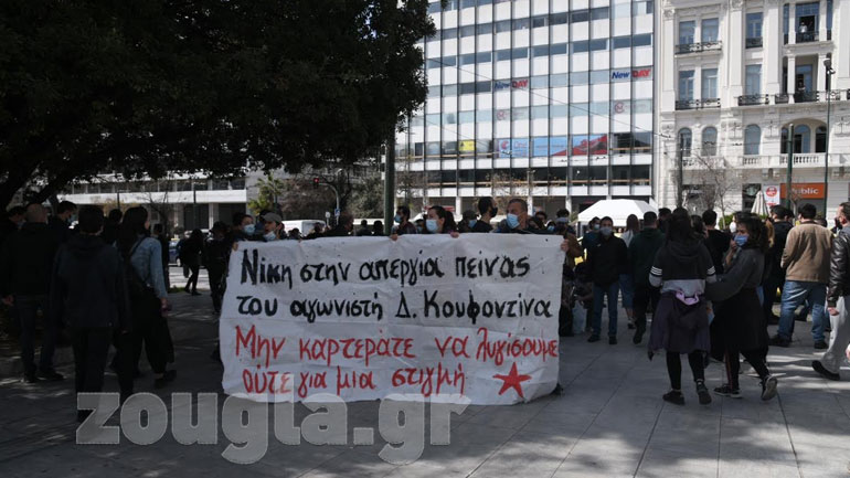 Πάντως, μέχρι τις 13:15 το μεσημέρι του Σαββάτου υπήρχαν επεισόδια και ένταση στο κέντρο της Αθήνας όπου συγκεντρώθηκαν ισχυρές δυνάμεις της Αστυνομίας. Υπενθυμίζεται ότι, η συγκέντρωση των διαδηλωτών, είχε σκοπό την συμπαράστασή τους προς τον Δημήτρη Κουφοντίνα ο οποίος ξεκίνησε απεργία πείνας στις 8 Ιανουαρίου 2021 με αίτημα την μεταγωγή του στις φυλακές Κορυδαλλού, ενώ από τη Δευτέρα 22 Φεβρουαρίου ξεκίνησε και απεργία δίψας.