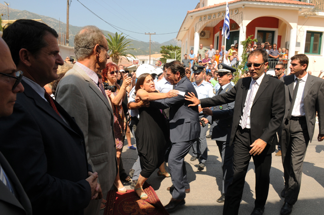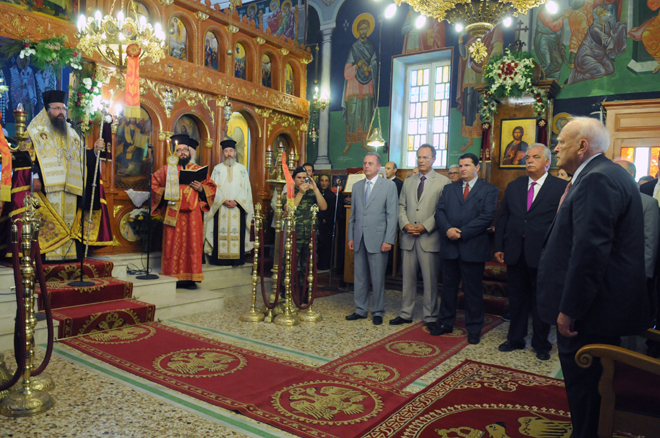 Μετά τη λειτουργία, δημιουργήθηκε μικρή ένταση όταν μία γυναίκα προσπάθησε να πλησιάσει τον κ. Παπούλια και να του παραδώσει ένα κείμενο με ευχές.