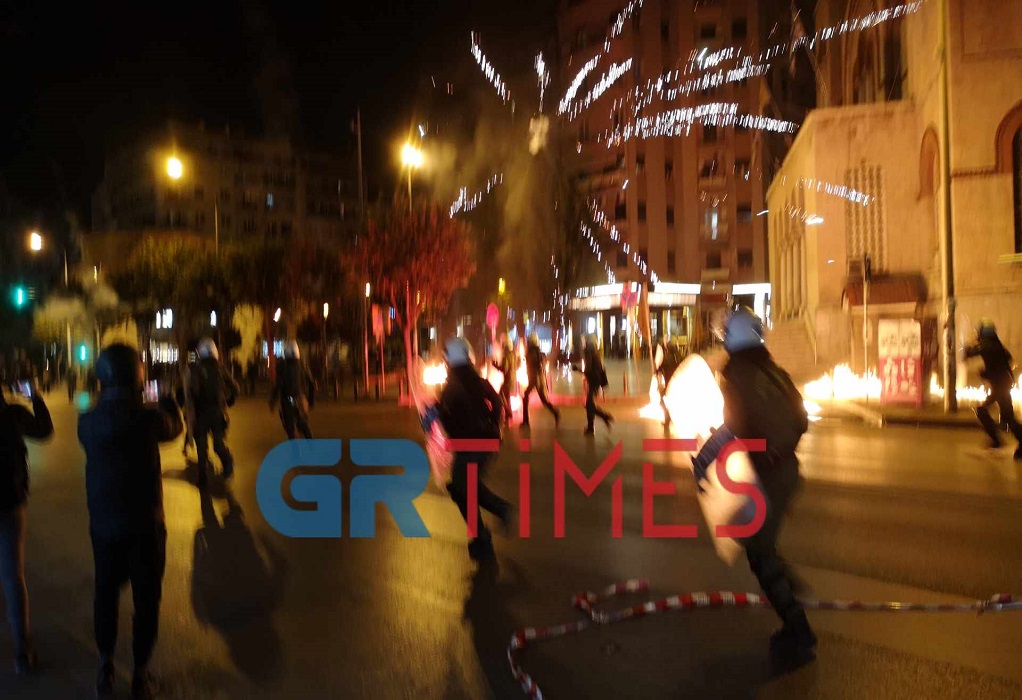Επεισόδια ξέσπασαν και στο κέντρο της Θεσσαλονίκης, μεταξύ αγνώστων και ΜΑΤ, μετά την ολοκλήρωση της πορείας για την επέτειο της εξέγερσης του Πολυτεχνείου.