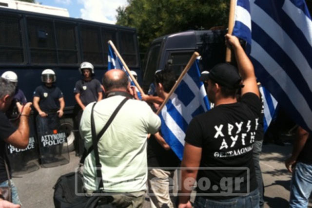 Λίγη ώρα αργότερα, κρατώντας ελληνικές σημαίες στα χέρια, μέλη της Χρυσής Αυγής έφθασαν στο τουρκικό προξενείο, όπου αναμένεται ο αρχηγός των Γκρίζων Λύκων, Νταβέντ Μπαχτσελί.