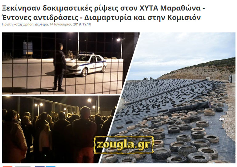 Όμως, σύμφωνα με μηνυτήρια αναφορά του Δήμου Μαραθώνα που θα υποβληθεί σύμφωνα με πληροφορίες από τον Δήμαρχο Ηλία Ψηνάκη την Πέμπτη, η εν λόγω ρίψη απορριμμάτων, που γίνεται με τη «συνοδεία» των αρχών της χώρας μάλιστα, είναι παράνομη!