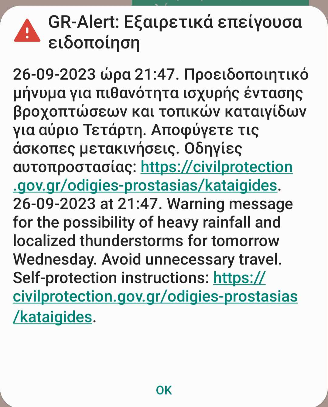 Το προειδοποιητικό μήνυμα του 112 για την κακοκαιρία Elias στην Αττική: