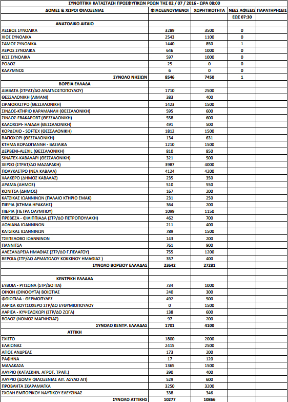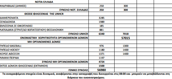 Σε 56.980 διαμορφώνεται ο συνολικός αριθμός προσφύγων και μεταναστών που παραμένουν σε κέντρα φιλοξενίας ανά την ελληνική επικράτεια, σύμφωνα με τα στοιχεία που δόθηκαν στη δημοσιότητα το πρωί του Σαββάτου.