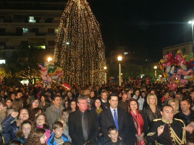 Ο δήμαρχος κ. Παπαναστασίου λίγα λεπτά μετά τις 7 έδωσε το σύνθημα για την φωταγώγηση μαζί με τις καθιερωμένες ευχές για υγεία κι ευτυχία, και έναν χρόνο γεμάτο χαμόγελα, δίνοντας ουσιαστικά και το εφαλτήριο για μια σειρά εκδηλώσεων, που θα πραγματοποιηθούν για «ένα παραμύθι από ζάχαρη», όπως έχουν ονομαστεί και οι φετινές εκδηλώσεις.
